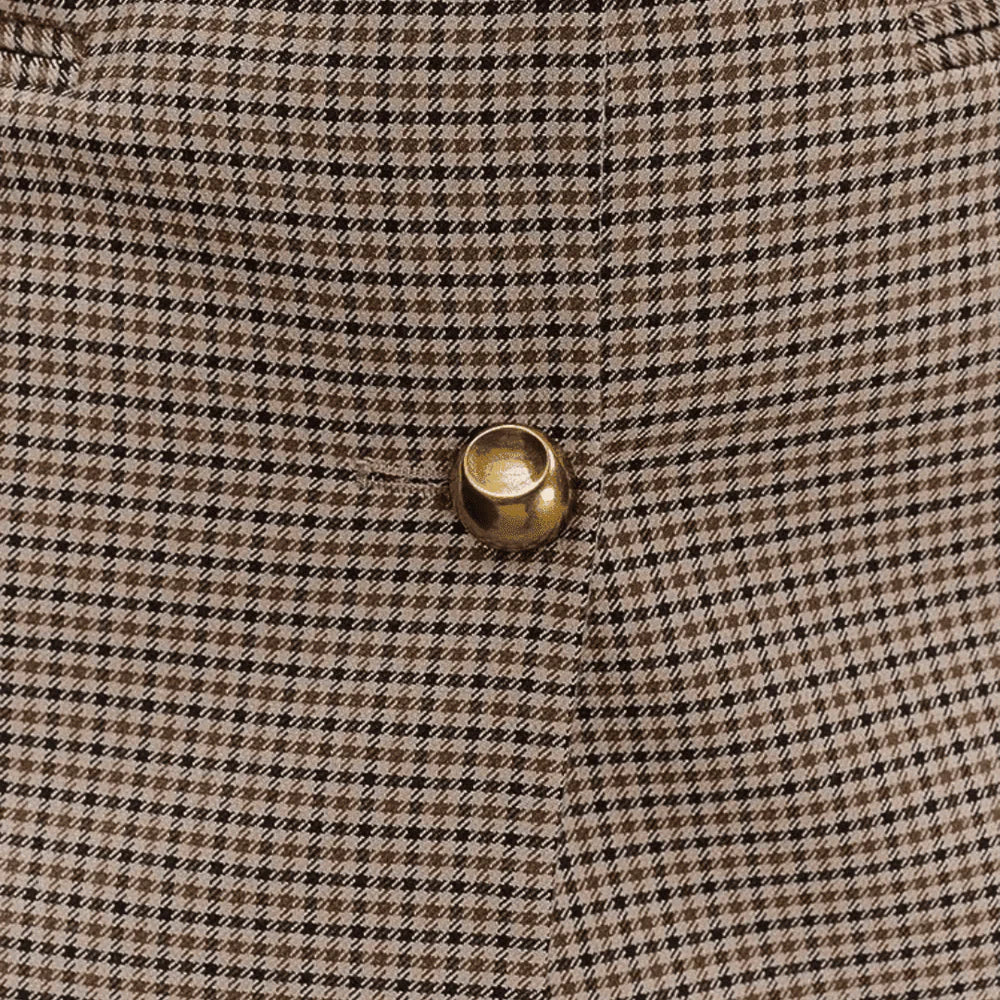Der Antoinette Blazer ist ein elegantes, vintage inspiriertes Stück, das für die moderne Frau entworfen wurde. Mit einem zeitlosen muster in neutralen Tönen betont er durch seine taillierte, strukturierte Silhouette und die feine Gürteldetailierung auf der Rückseite die feminine Form auf dezente Weise. Die markanten Revers und die goldenen Knöpfe verleihen dem Blazer einen Hauch von Raffinesse und verbinden Eleganz mit moderner Power Attitüde. Der Antoinette Blazer bietet Komfort und Stil für den ganzen Tag.