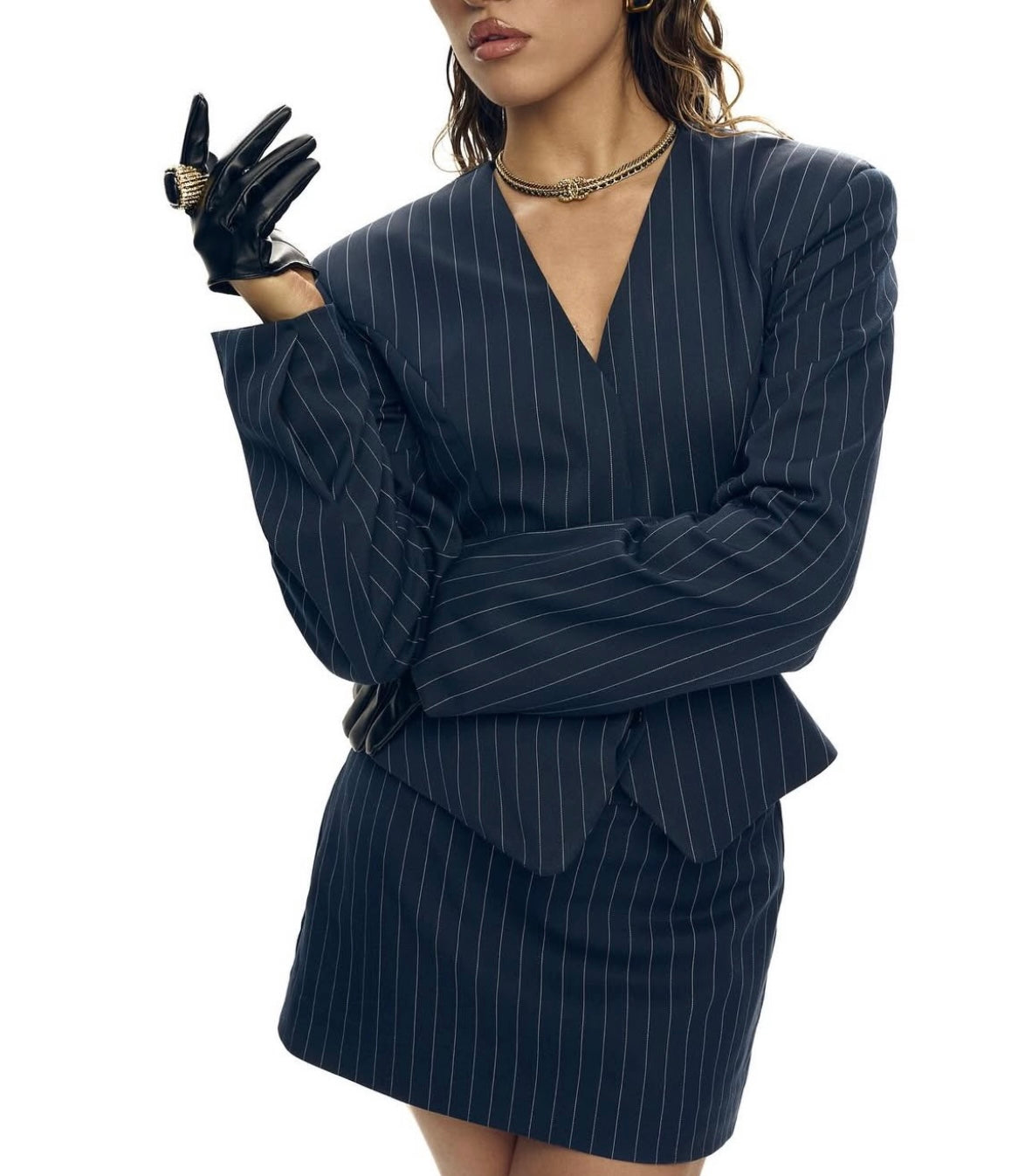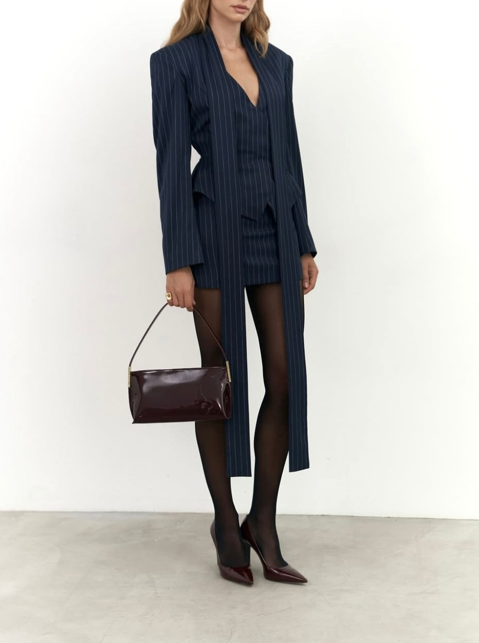 Crafted with attention to detail, this navy and white striped set blends timeless tailoring with modern design.