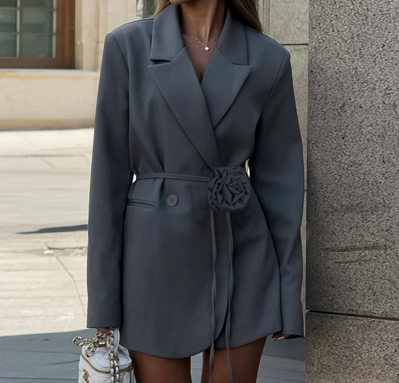 Designed to offer both style and versatility, this regular fit blazer features a beautiful detachable flower belt that adds a feminine flourish. Perfect for transitioning from day to night, you can wear the belt to create a statement look or remove it for a more classic, tailored vibe. Crafted with attention to detail, this blazer ensures comfort and sophistication, making it an ideal piece for any occasion. Effortlessly chic, it’s a wardrobe essential that lets you express your personal style.