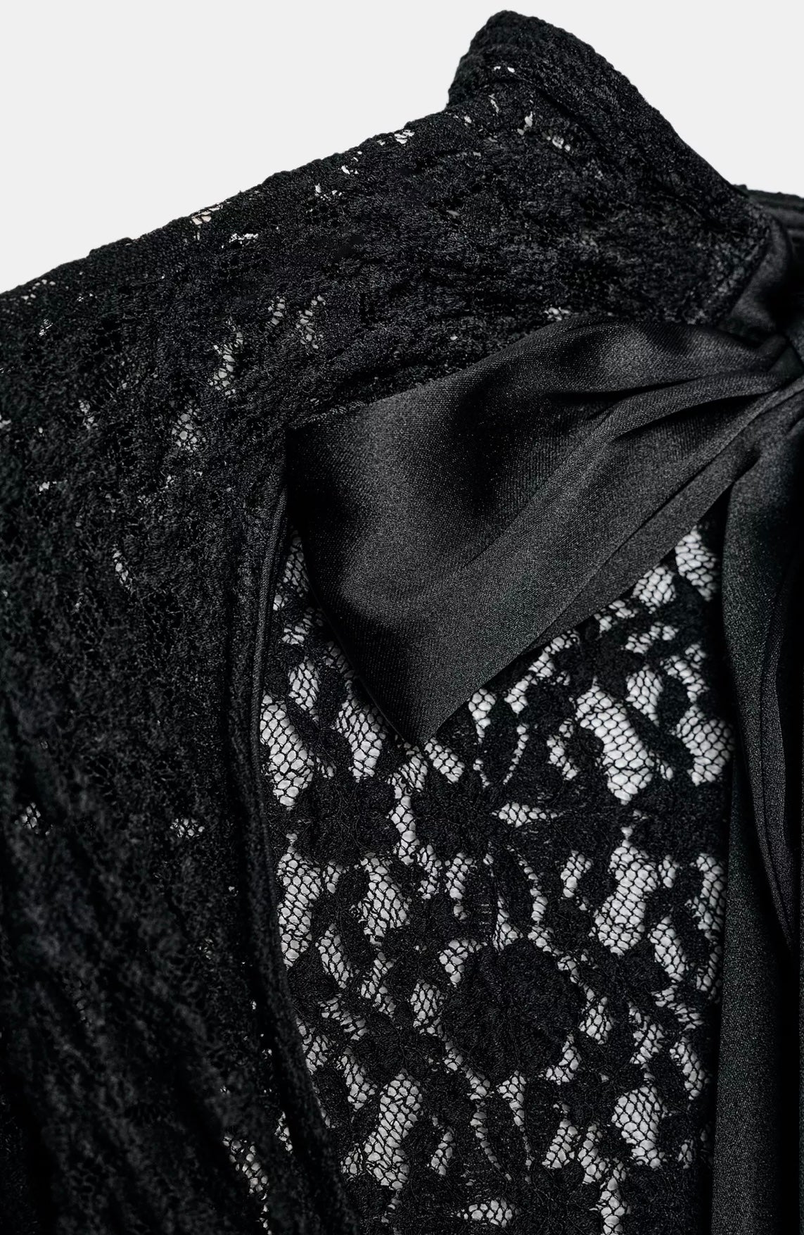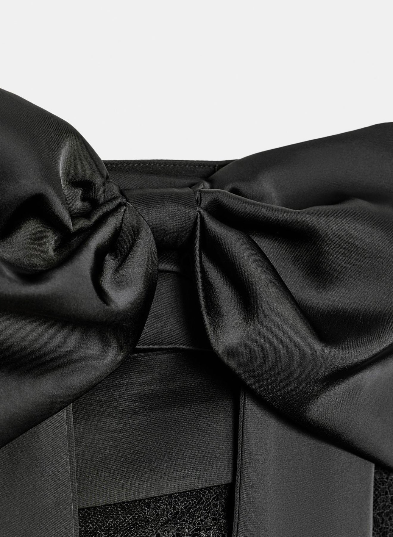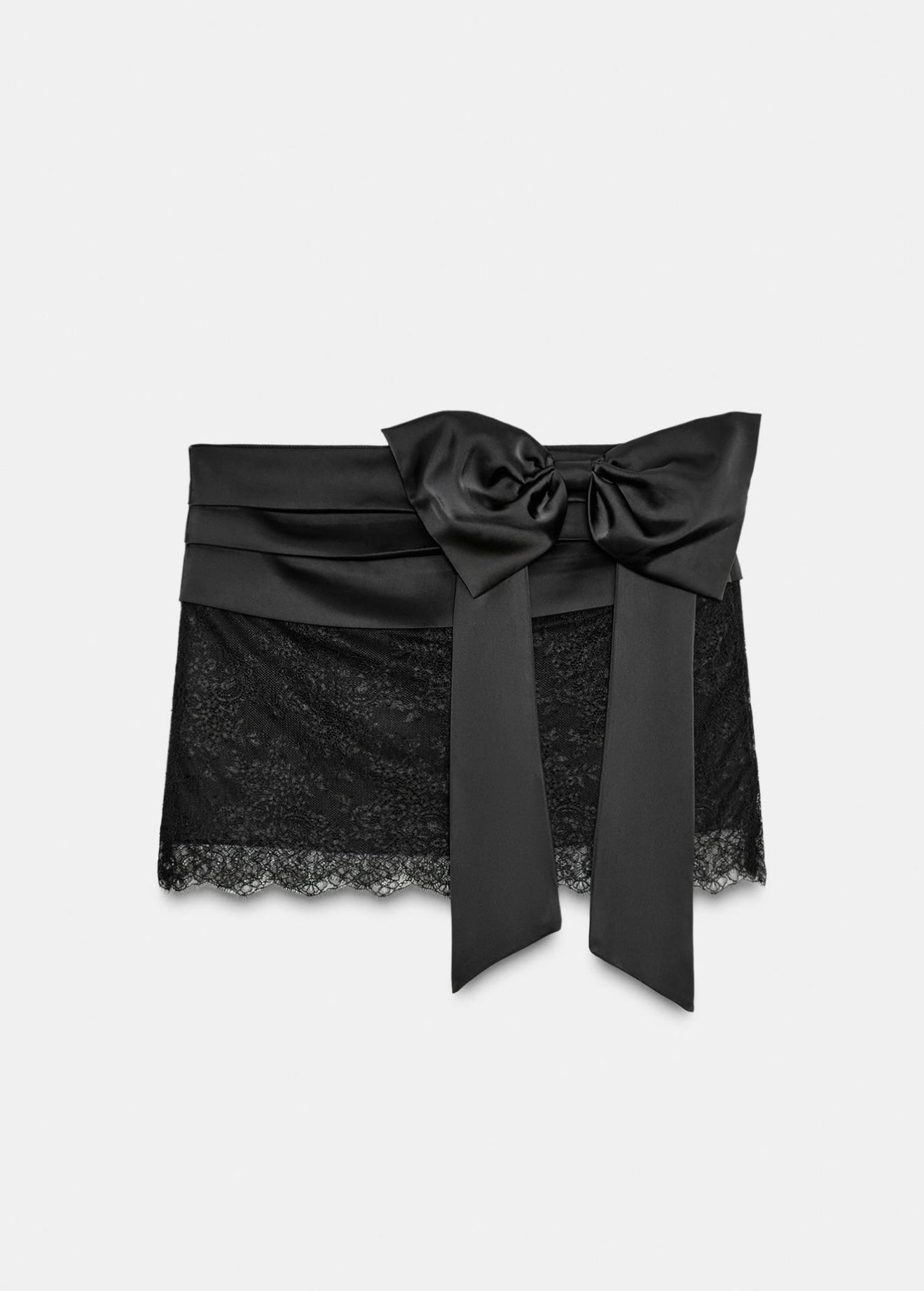 Dieses zweiteilige Set vereint verspielte Eleganz mit femininer Raffinesse und ist perfekt für festliche Anlässe oder besondere Momente. Der Minirock aus edlem Satin sitzt dank des mittelhohen Bunds bequem und schmeichelt der Figur. Satin Schleifenapplikationen und feine Spitze am Saum setzen stilvolle Akzente, während der verdeckt eingearbeitete Reißverschluss an der Seitennaht für ein nahtloses Finish sorgt.