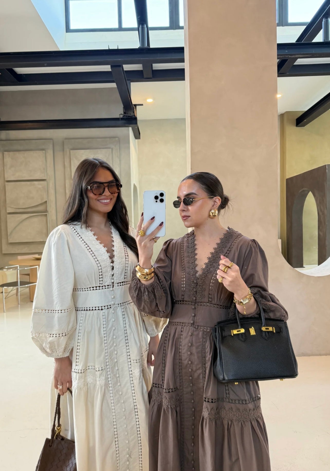 This beautifully crafted dress blends elegance, comfort, and timeless style. A unique V neckline paired with delicate lace