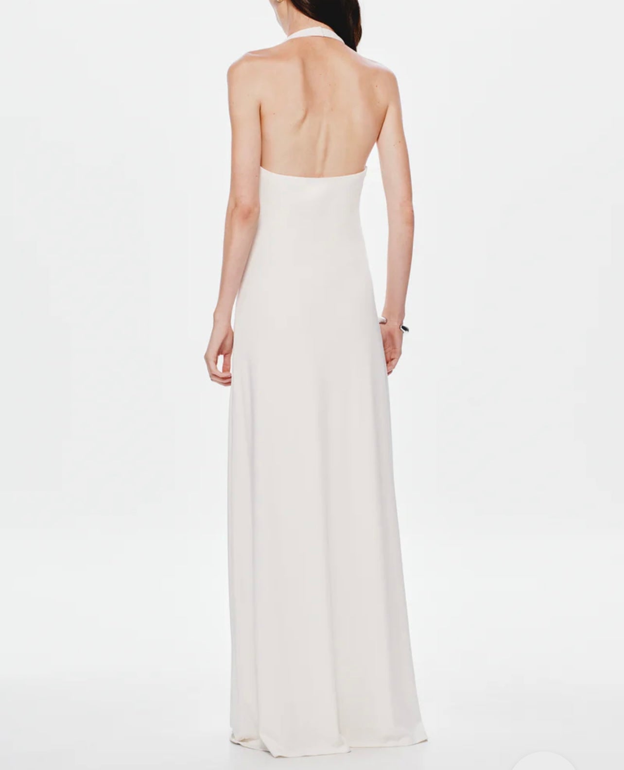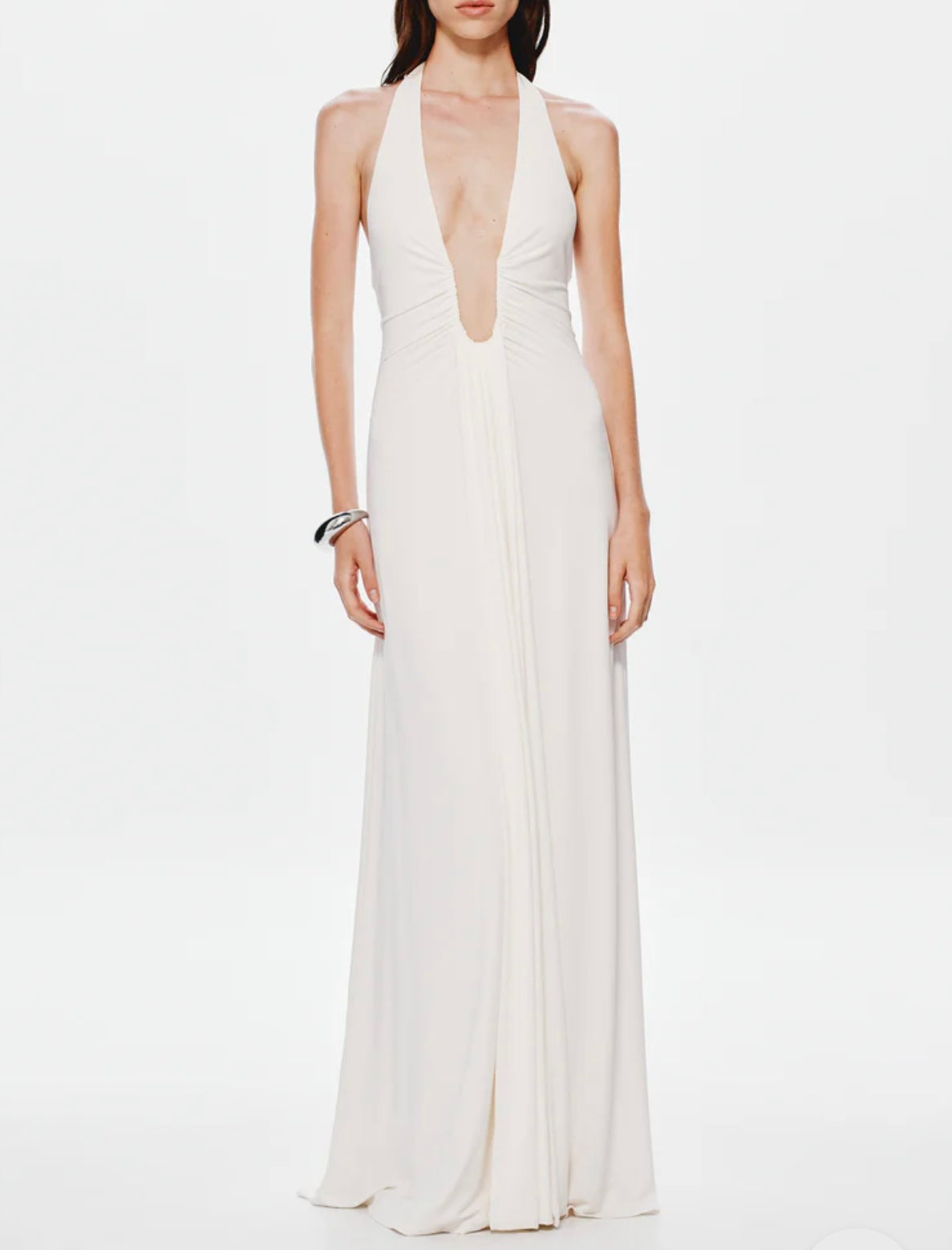 The Mirai Dress in White and Black is a silhouette designed to turn heads. This signature piece features a daring plunging halter neckline, complete with an adjustable wire for a customized fit, and an elegant waterfall sash detail that adds a touch of drama. Crafted to flatter, Mirai embraces long, clean lines that subtly highlight the cleavage and trace the curves of the body before sweeping gracefully to the floor. Bold yet refined.