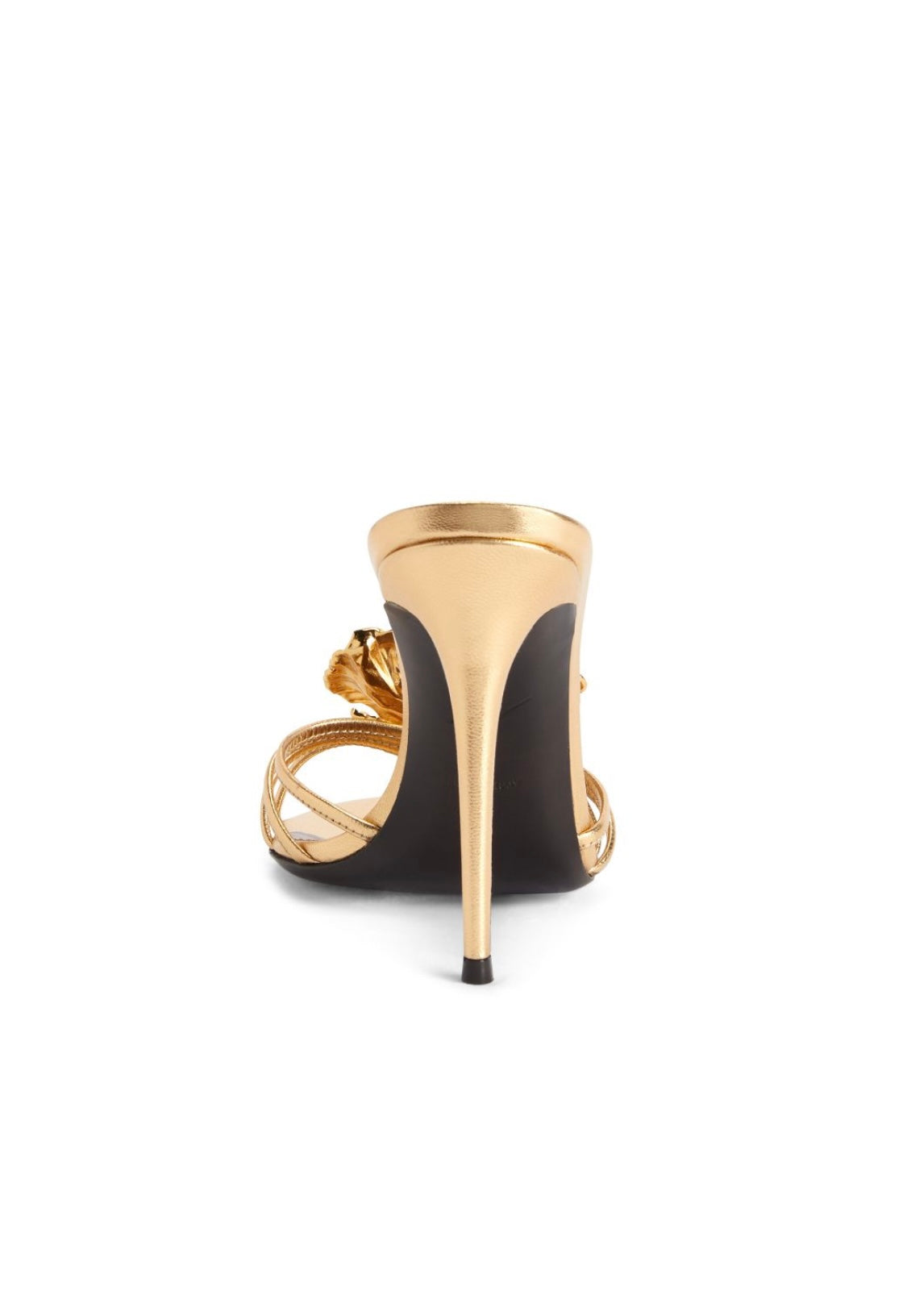 Bold, Sculptural, Striking. These open toe mules are crafted in high shine laminated PU Leather and finished with a statement metal flower that catches the light with every step. The slender 8 cm stiletto heel adds elevation and edge, making this pair the ultimate blend of modern femininity and high impact glamour. Designed to stand out day or night.