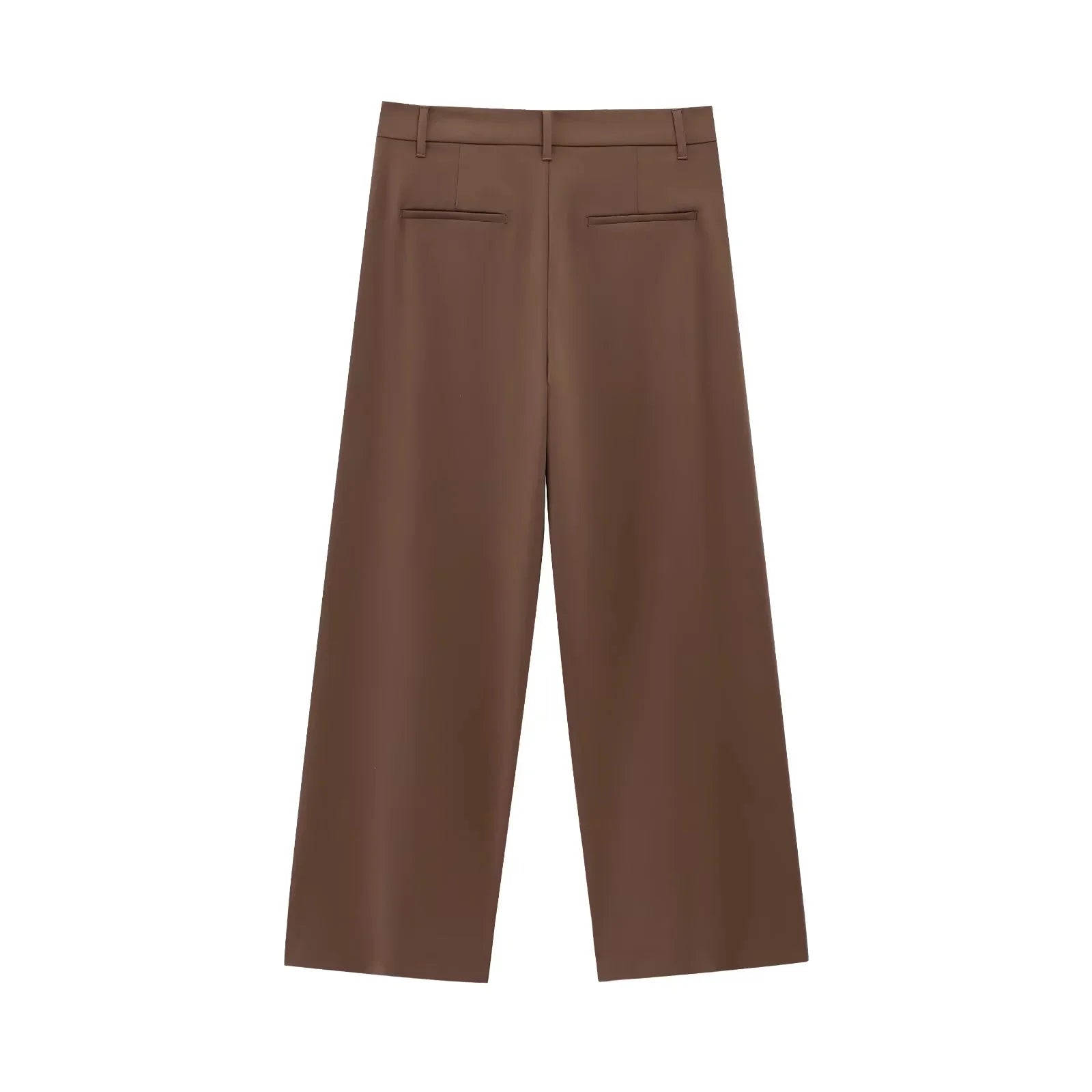 Diese elegante, braune Anzughose mit klassischen Bundfalten, sorgt für eine stilvolle Silhouette. Der lockere Fit garantiert hohen Tragekomfort und verleiht dem Look eine entspannte Note, ohne an Eleganz zu verlieren. Dank ihres zeitlosen Designs lässt sich die Hose vielseitig kombinieren ob im Büro, zu besonderen Anlässen oder als Teil eines schicken Alltagslooks. In Kombination mit dem passenden Blazer entsteht ein edles Co-Ord Set, das mühelos Professionalität und modernen Chic vereint.