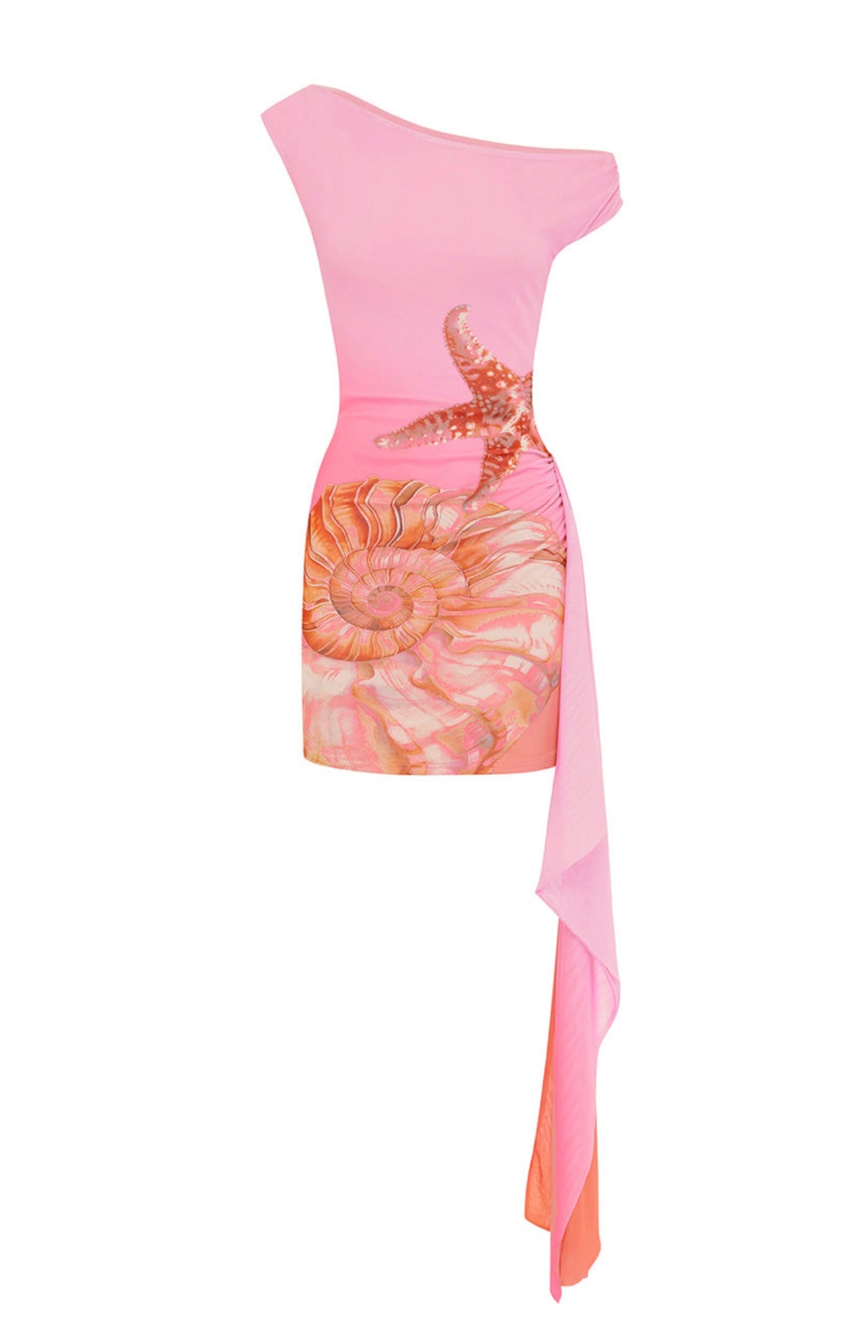 Turn heads this season in the Rosa Mini Dress, designed with a flattering asymmetrical neckline, a playful side cut-out, and a soft sash tie detail that adds a touch of elegance. Featuring an exclusive sea inspired print, this lined mini dress slips on easily thanks to its comfortable stretch fabric, hugging your figure in all the right places. Whether you're heading to a beach party, rooftop soirée, or vacation getaway, the Rosa Mini is your go to for effortless summer glam.